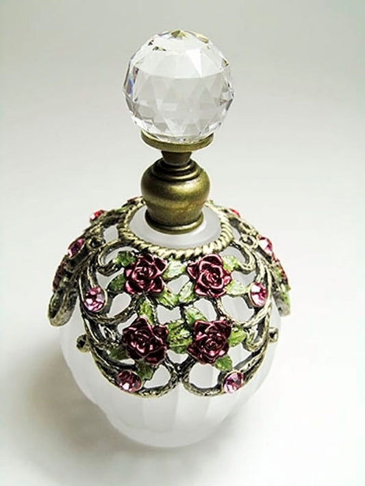 Antique Perfume Bottle With Crystal Rhinestone Screw Cap and Rod.