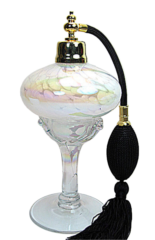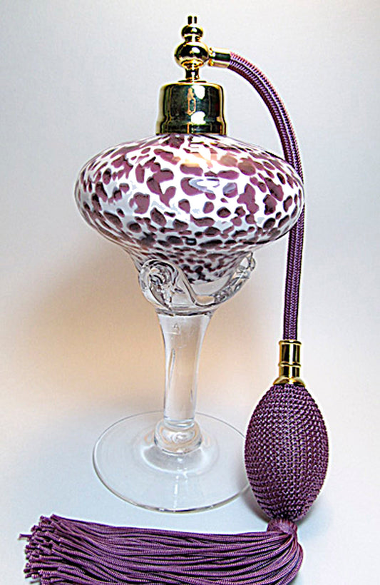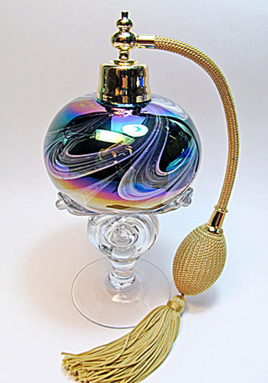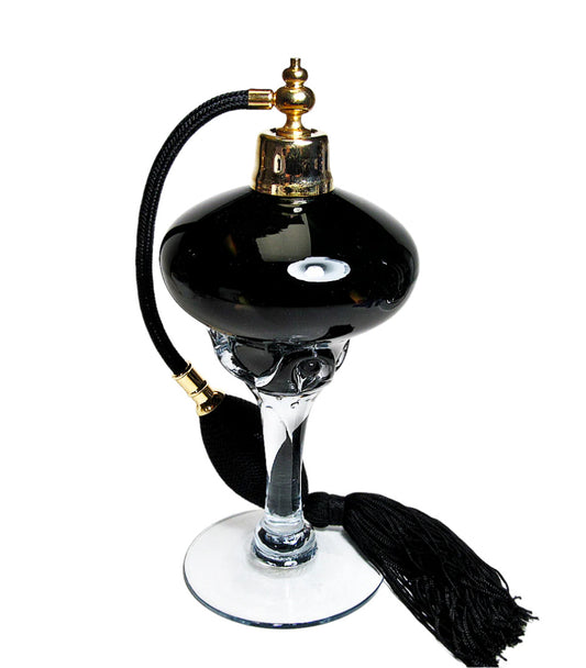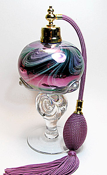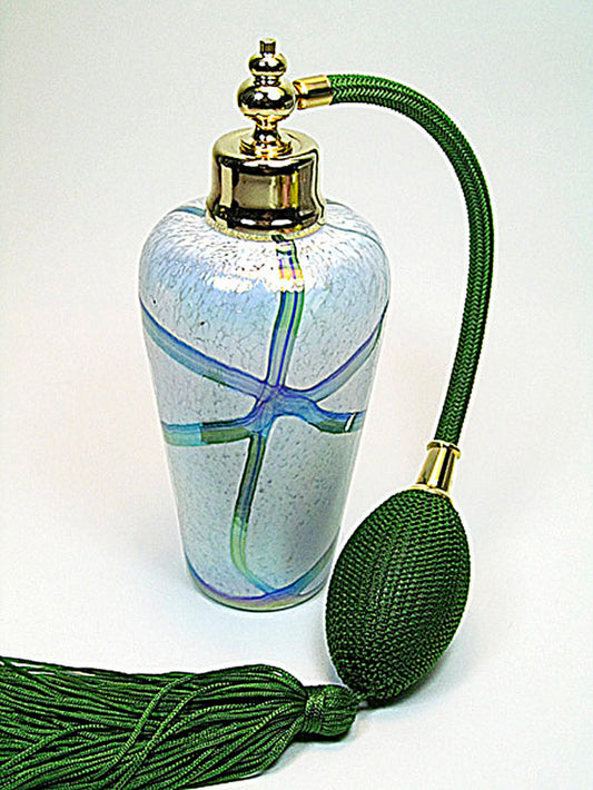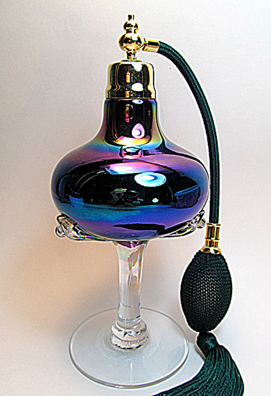 Art made with hand and mouth blow crystal perfume bottle with bulb spray mounting.