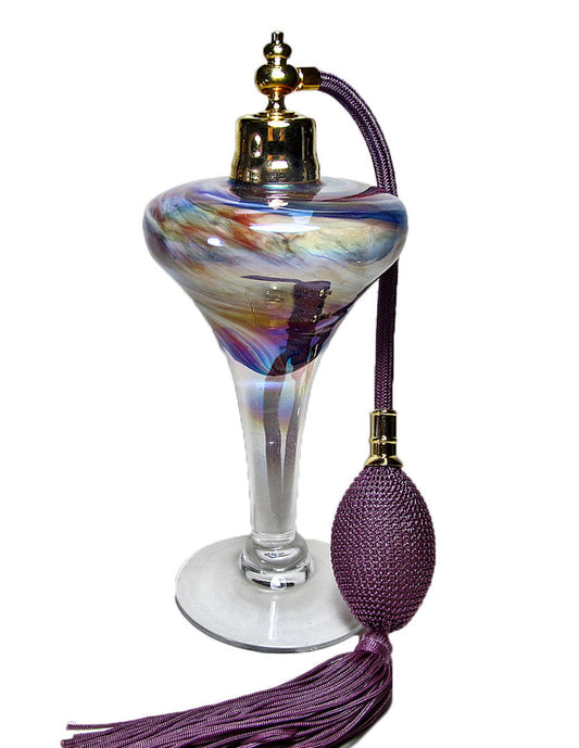 Hand-made art crystal perfume bottle with purple (Lavender) bulb and tassel spray mounting.