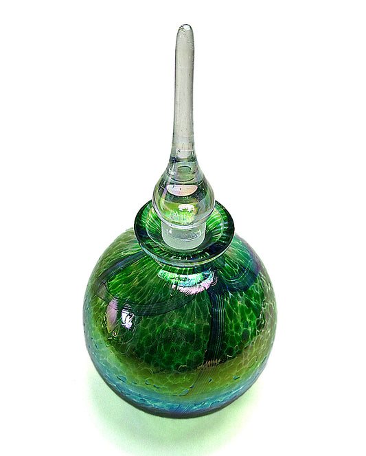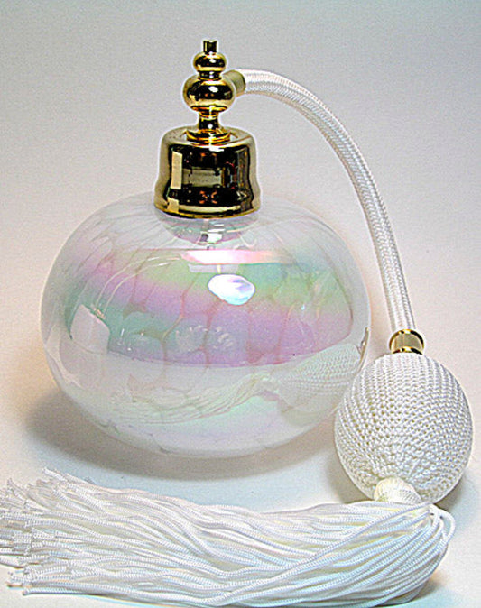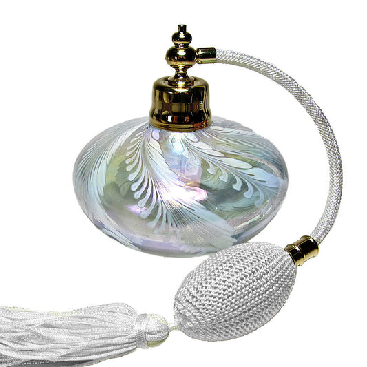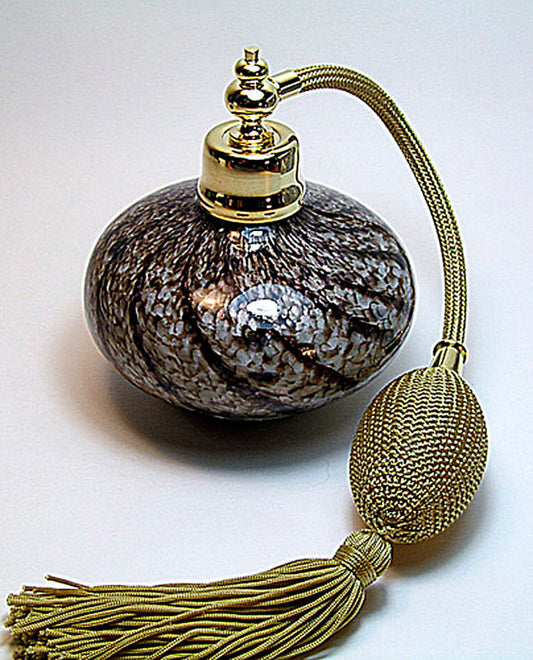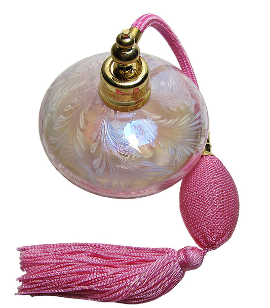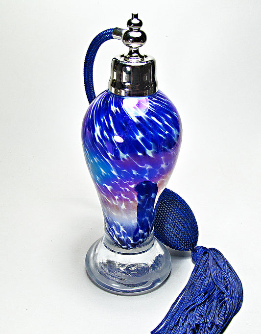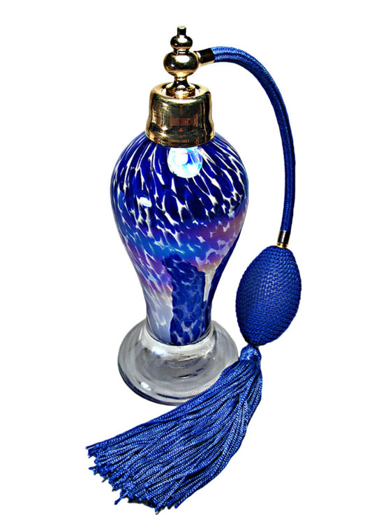 Hand Made Art Glass Perfume Bottle With Bulb And Tassel Spray Mounting.
