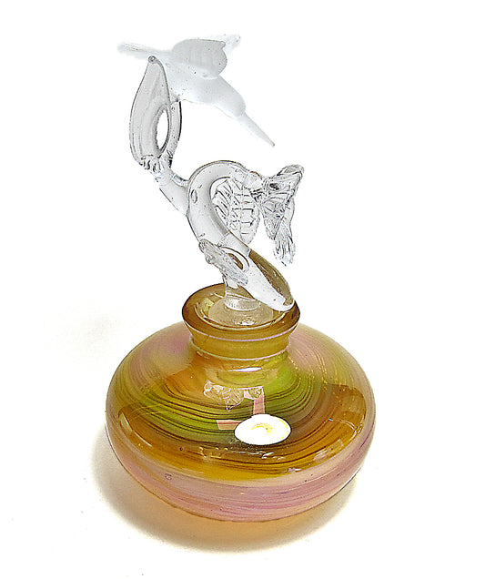 Art made with hand crystal perfume bottle with crystal flower and bird stopper.