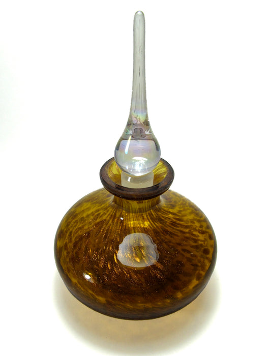 Vintage hand made art Golden brown crystal perfume bottle with crystal stopper.