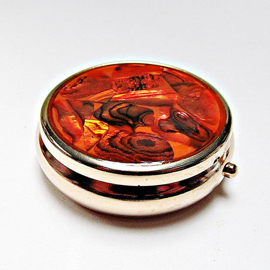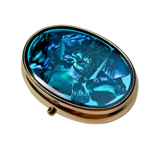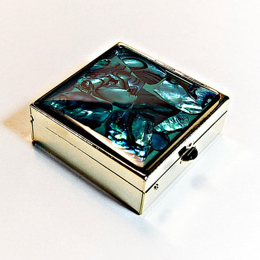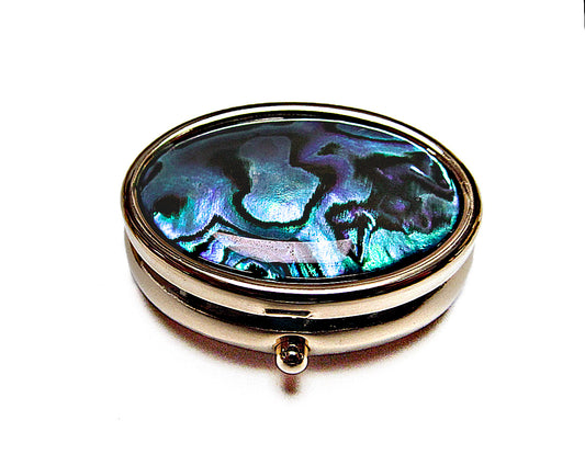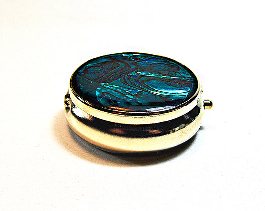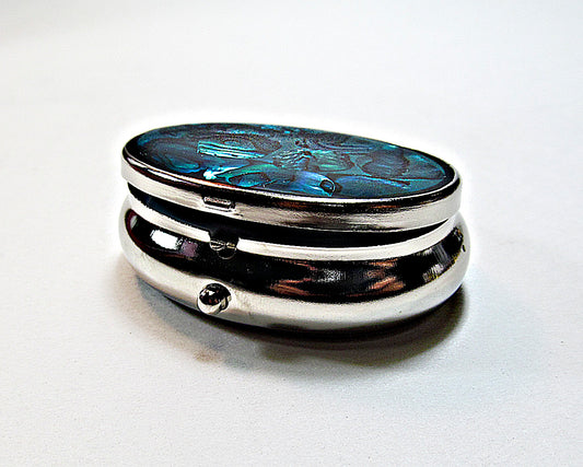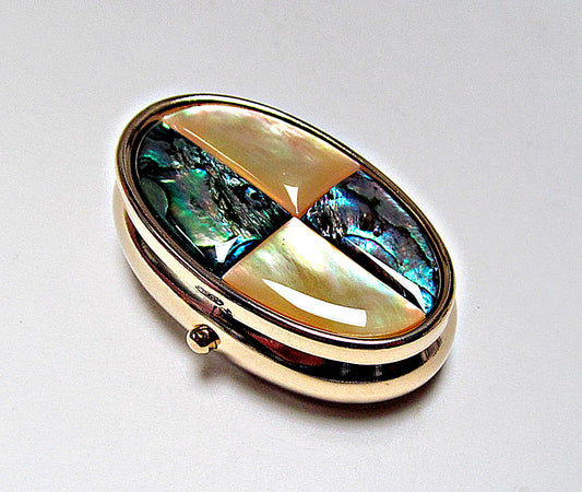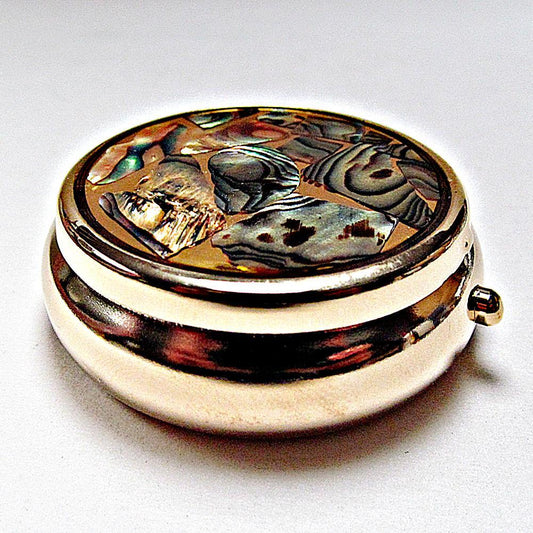 Compact Pill Box Made With Mother Pearl Shell For Pills And Small Jewelry.