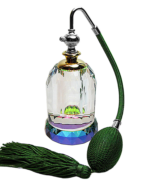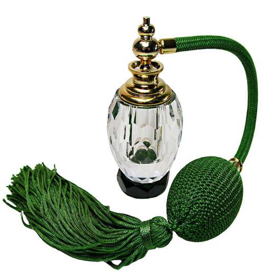 Lead Crystal Perfume Atomizer Bottle With Green Squeeze Bulb And Tassel Spray Mounting.