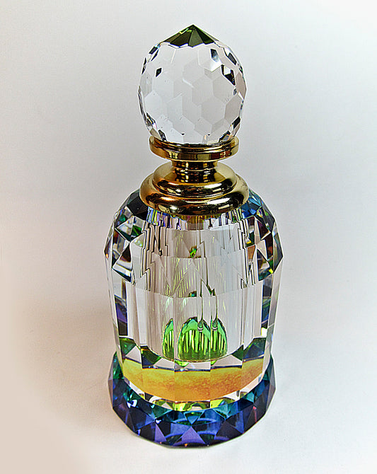 Genuine Lead Crystal Perfume Bottle In Iridescent Effective With Crystal Stopper and Glass Rod.