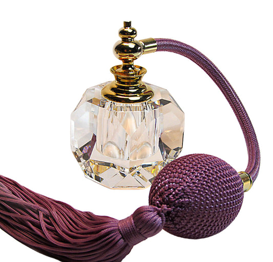 Lead Purple Crystal Perfume Atomizer Bottle With Purple Squeeze Bulb And Tassel Sprayer.