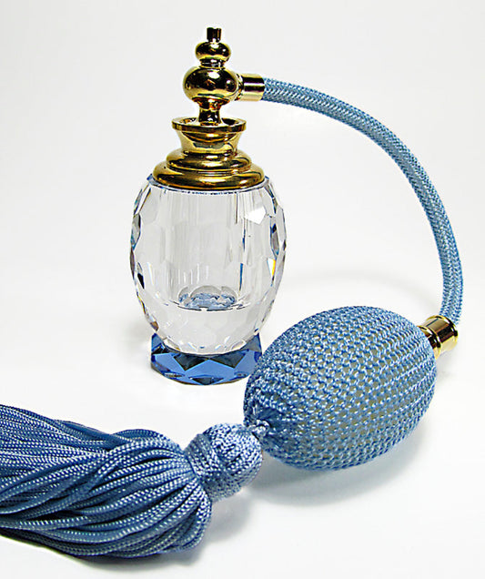 Lead Crystal Perfume Atomizer Bottle With Sky Blue Squeeze Bulb And Tassel Spray Mounting.