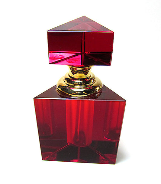 Red Crystal Perfume Bottle With Red Crystal Stopper And Glass Rod.
