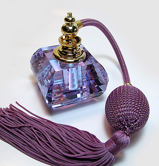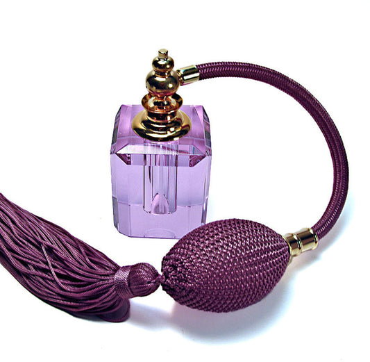 Purple Crystal Perfume Bottle With Lavender Bulb And Tassel Spray Mounting.