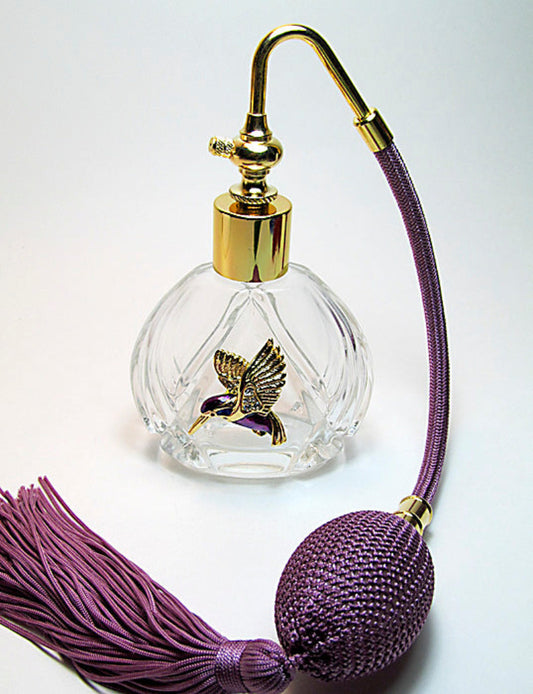 Unique Perfume Atomizer Bottle With Purple Bulb And Tassel Spray Attachment.