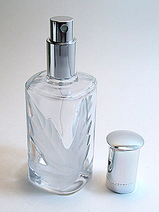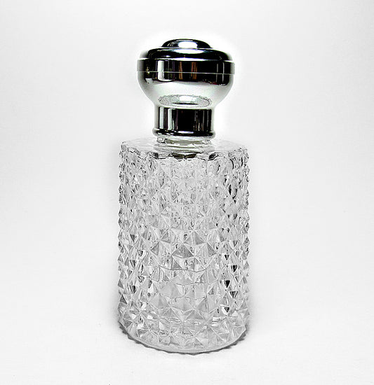 Crystal Glass Perfume Bottle With Silver Atomizer Spray Pump and Over Cap.