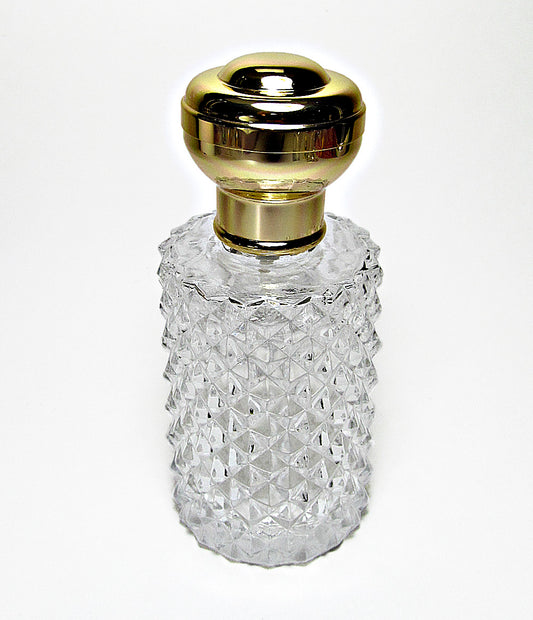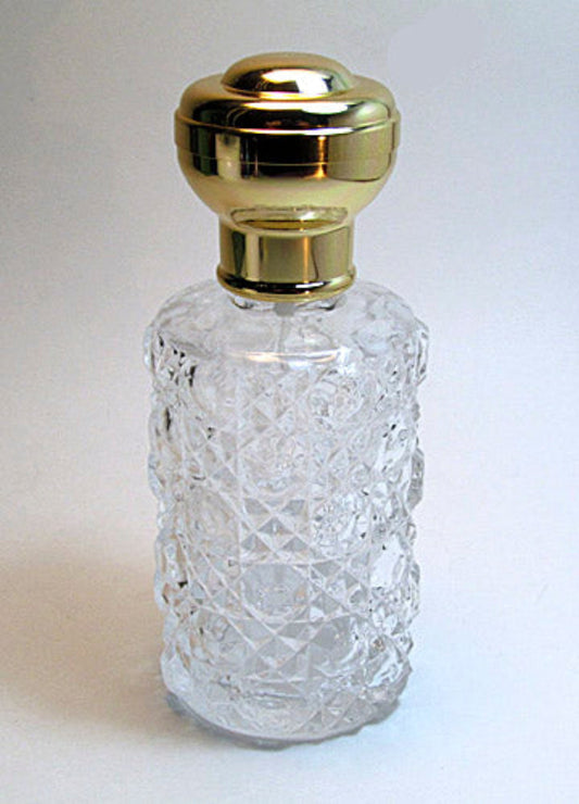Vintage Crystal Glass Perfume Bottle With Leakage Proof Atomizer Spray Pump and Gold Over Cap.