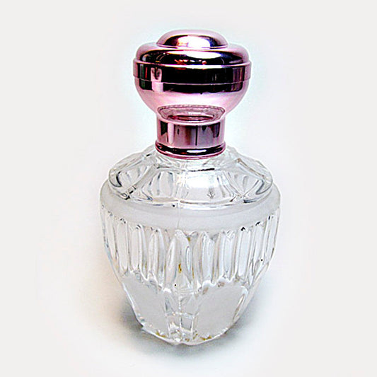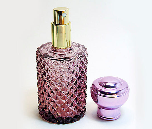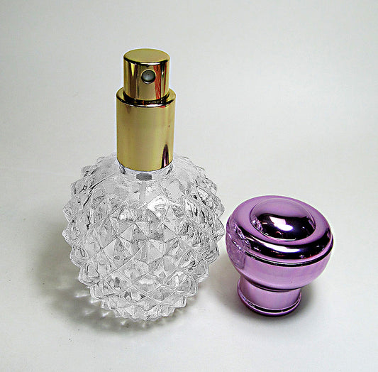Crystal Glass Perfume Bottle With Leakage Proof Atomizer Spray Pump and Violet Metal Cap.