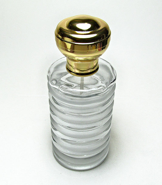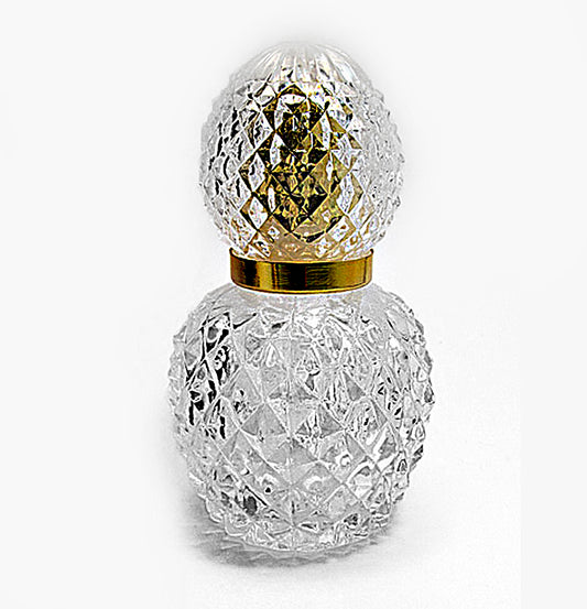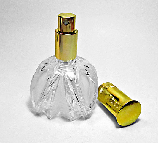 Crystal Glass Perfume Bottle With Leakage Proof Atomizer Spray Pump and Gold Over Cap.